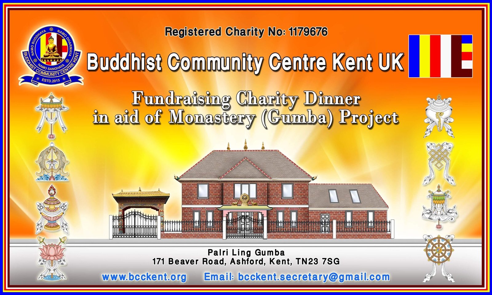 The Fundraising Charity Dinner in aid of Monastery (Gumba) re-construction project in Ashford is going to take place on Saturday 22 April 2023 at 1600 hours at Hawkinge Community Hall, Heron Forstal Avenue, Hawkinge, Folkestone, Kent, CT18 7FP. The ticket price is £50 (three course meal plus drinks are included).